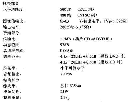 2)DVD機的主要技術指標,DVD機采用較高級別的數據壓縮技術,各項技術指標均超過其他家用av信號源,以先鋒DV-505數字視盤機為例,該機屬第二代普及型機種,但其各項技術指標已很可觀,下面是該機的主要技術指標。